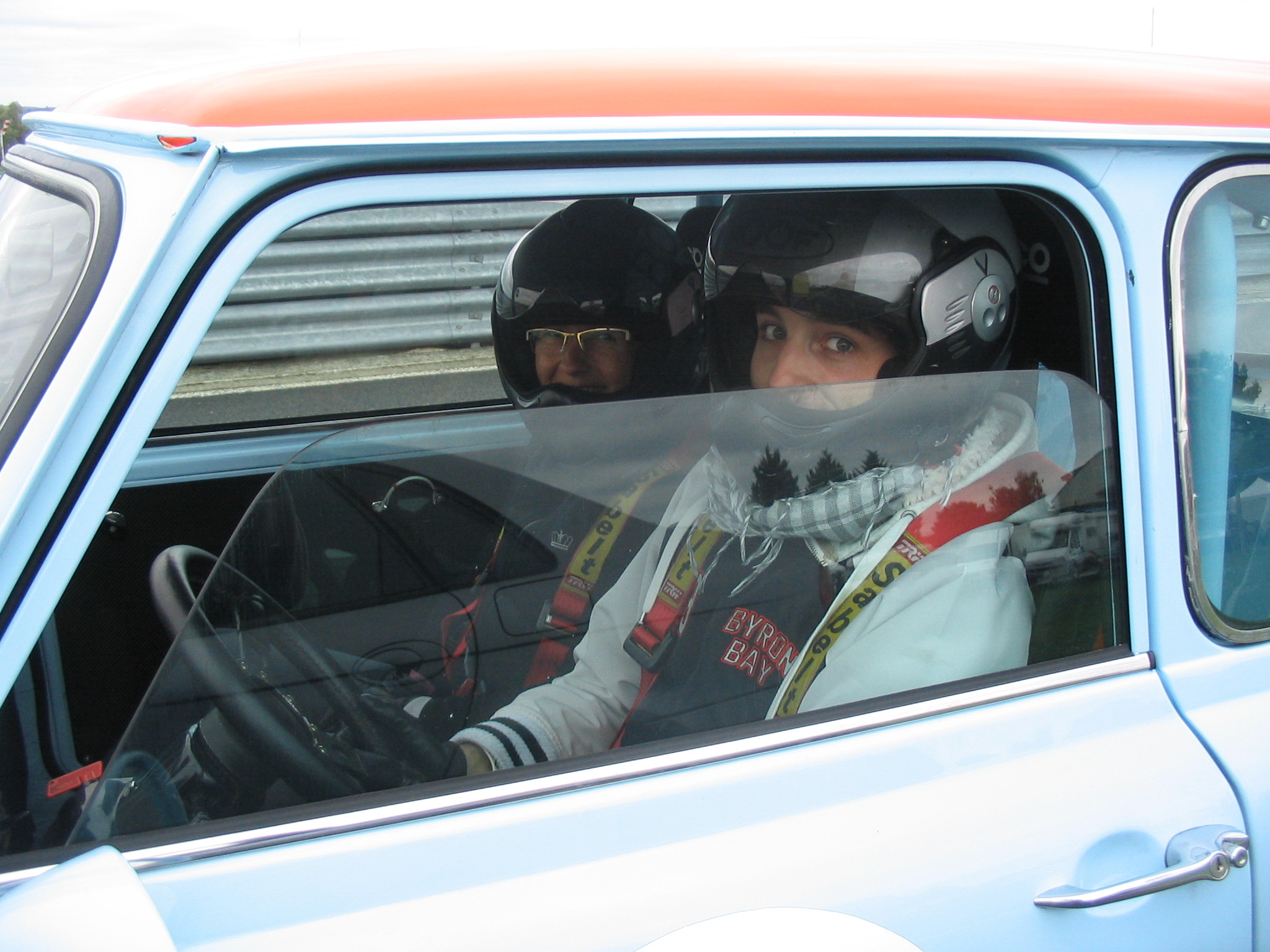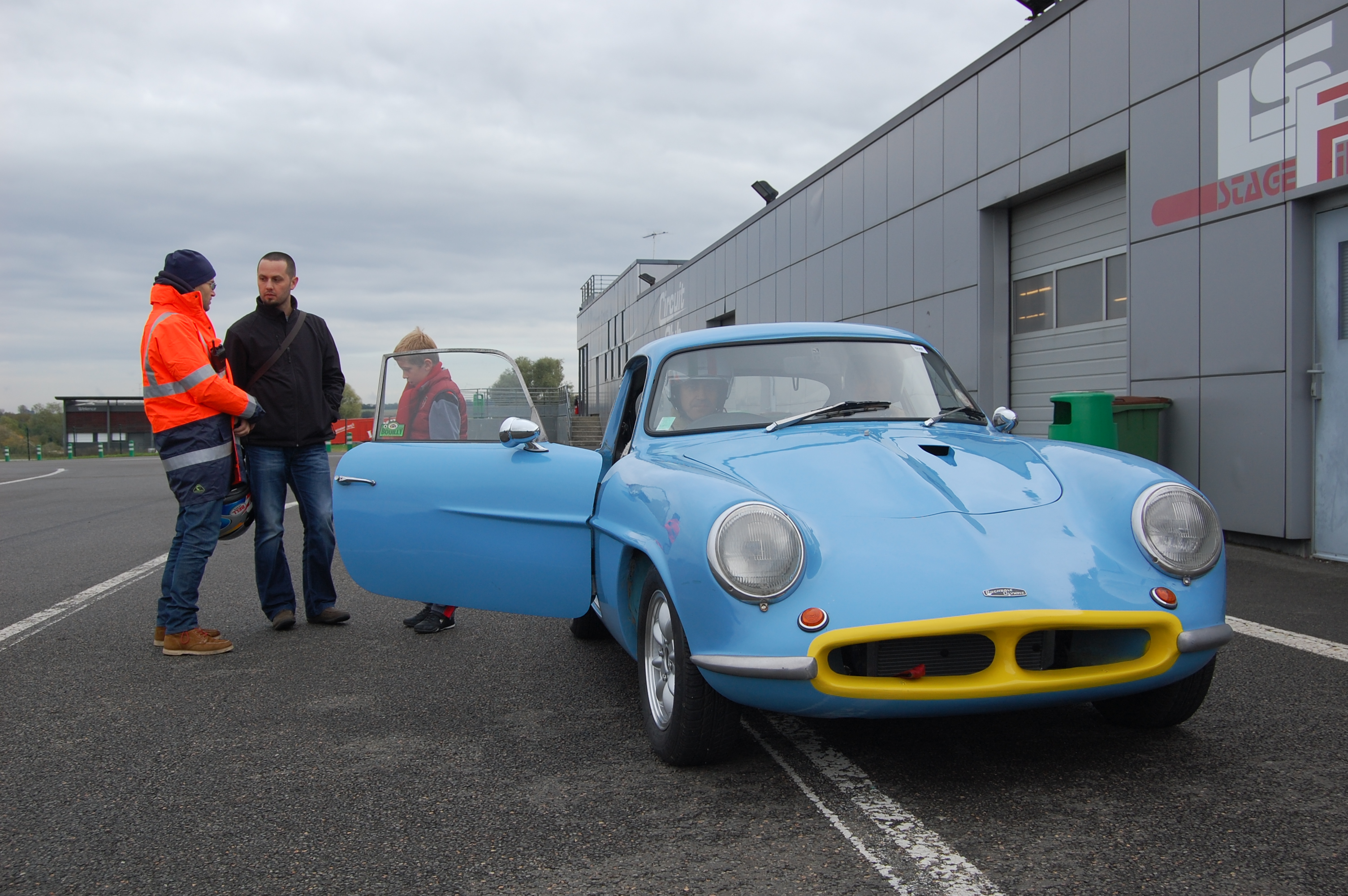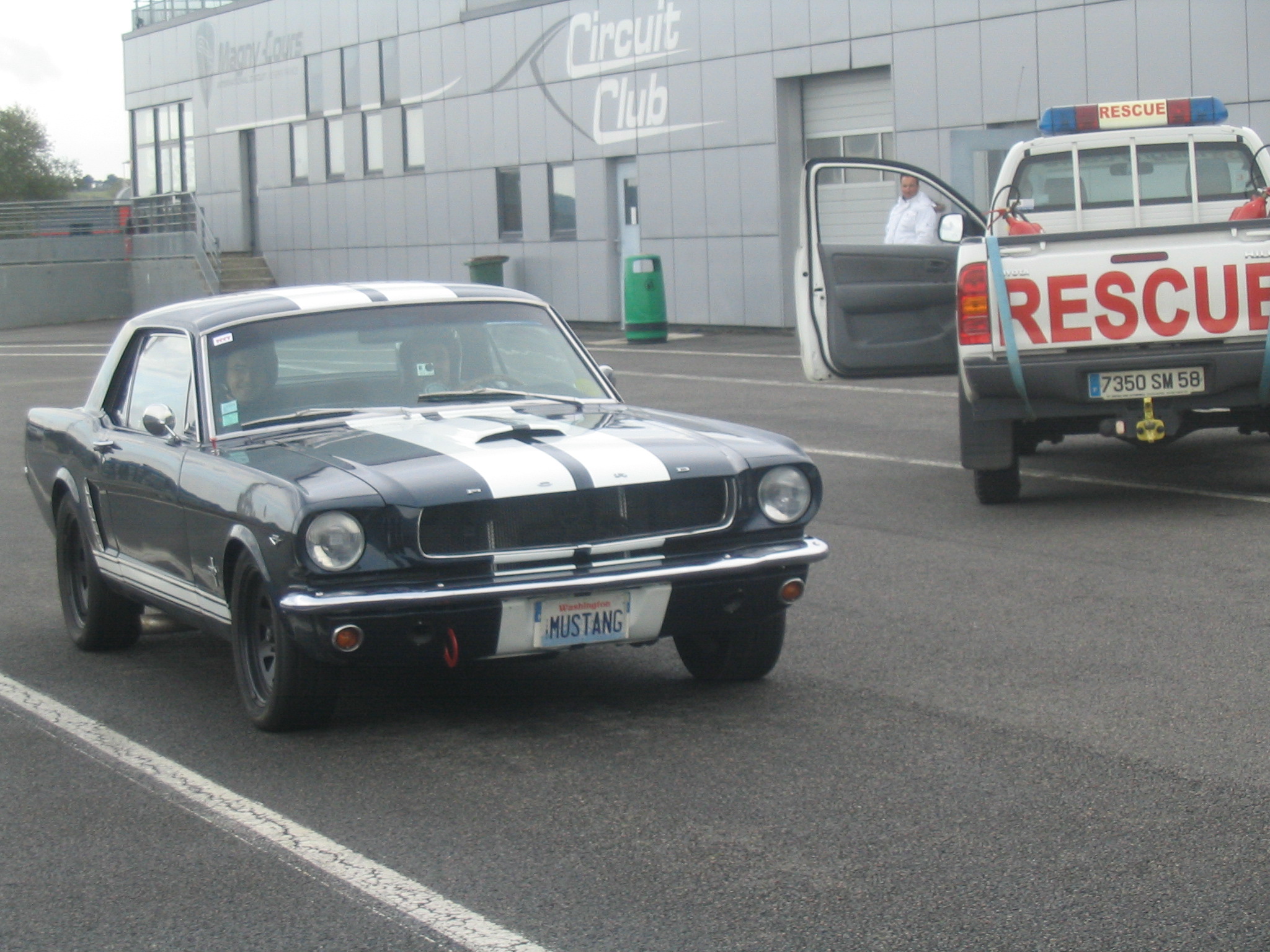 En parlant de première, Cédric faisait découvrir à son beau père les joies de l’auto ancienne et d’une journée circuit. Après 450km de route à s’imprégner des odeurs et sons propres au V8 de la ‘stang, il est sous le charme. Mais le lendemain pendant le briefing le stress monte, pas autant peut-être qu’au moment de s’harnacher et enfiler le casque. La première session fait doucement monter la pression, tandis que la seconde plus rythmée lui apporte son lot de sensations et d’adrénaline… bien assez pour un premier contact. Sur le chemin du retour, bercé par le ronron du V8 et remis de ses émotions , il synthétise lui-même ses impressions : «franchement entre l’ambiance et les sensations en piste, je comprends la passion qui vous anime !».