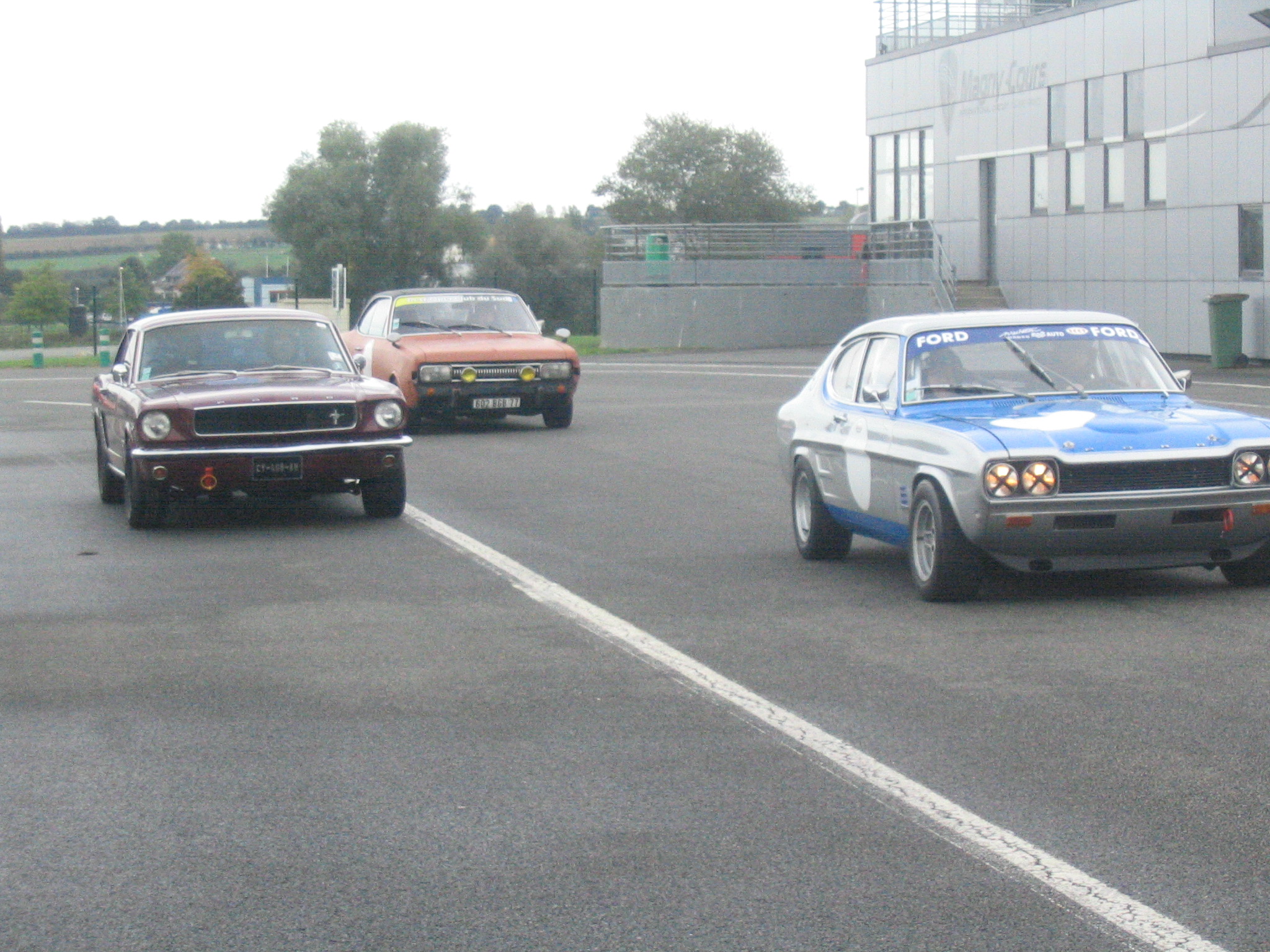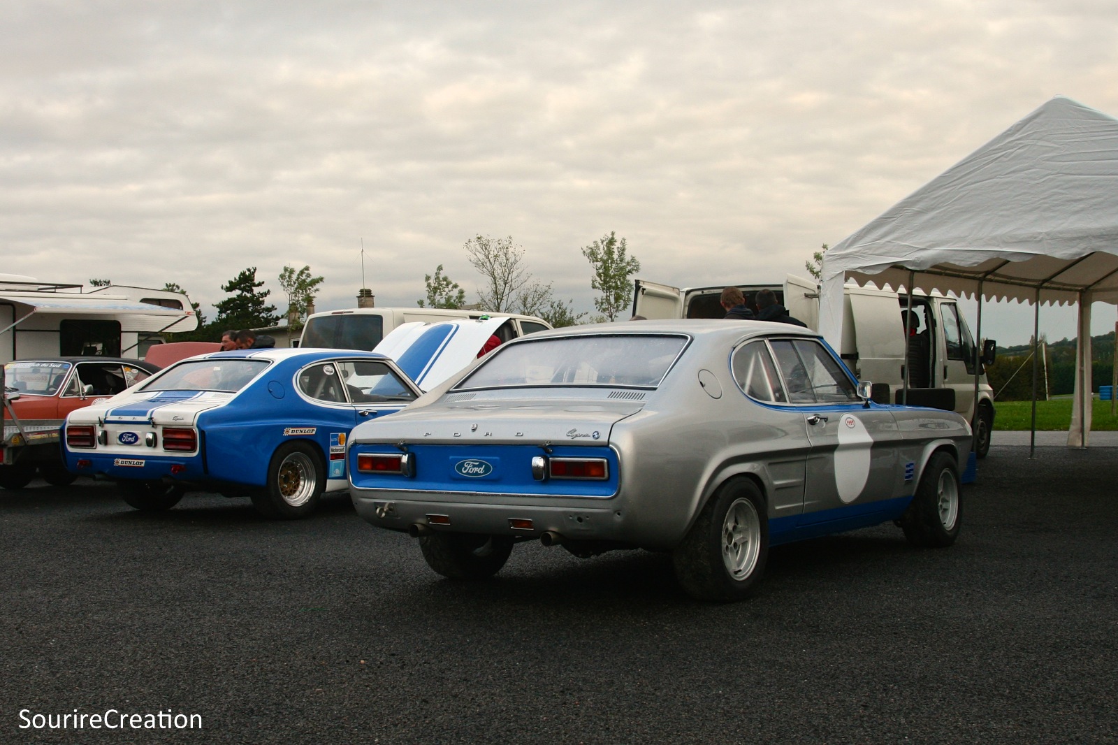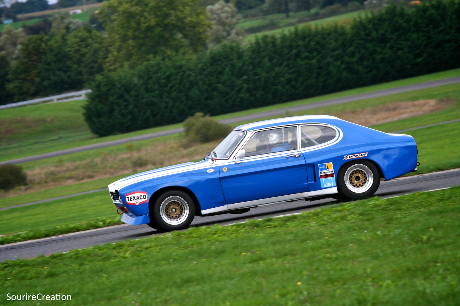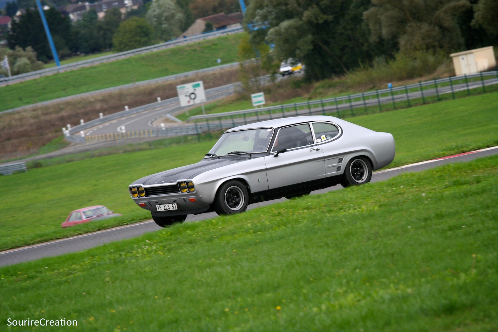 Les américaines faisaient d’ailleurs leur show avec entre autre la très belle Shelby GT350R de Daniel qui donnait la réplique à la non moins puissante Cheetah de Xavier. Il y avait aussi la première de certains qui, ayant vécu l’édition 2012 en «sac de sable», avaient remué ciel et terre pour être au volant en 2013. C’est le cas de Jean-Louis qui se joignait à nous avec sa Capri 2600GT ayant justement bien connue la terre, car c’est sur cette surface qu’ils avaient couru ensemble dans les années 80. Gardant les stigmates de cette vie trépidante, l’inusable Capri fit l’aller retour par la route et ne se ménageait pas en piste, malgré ses plus de 200 000km au compteur. Preuve que les autos que l’on aime sont «éternelles» !