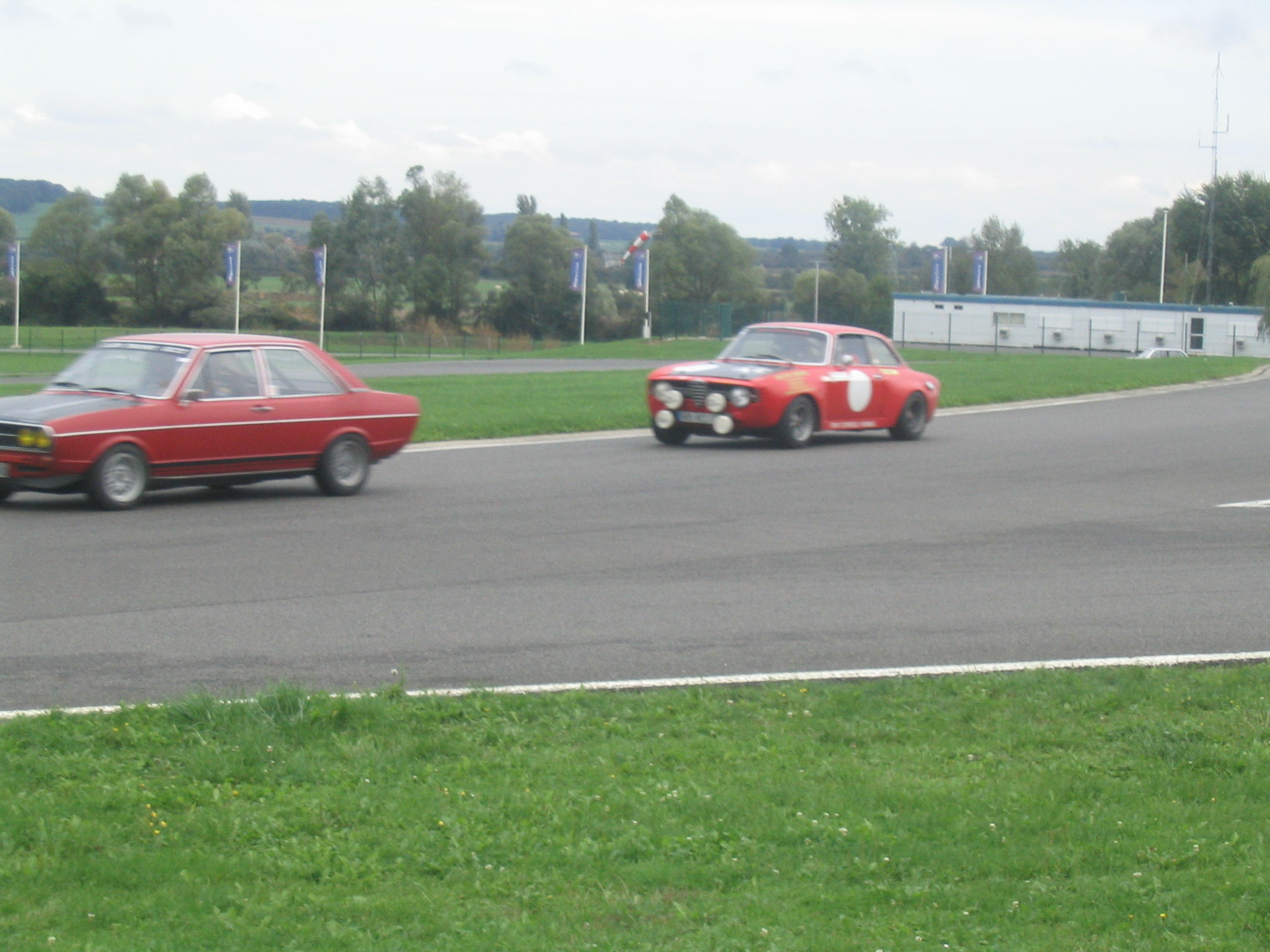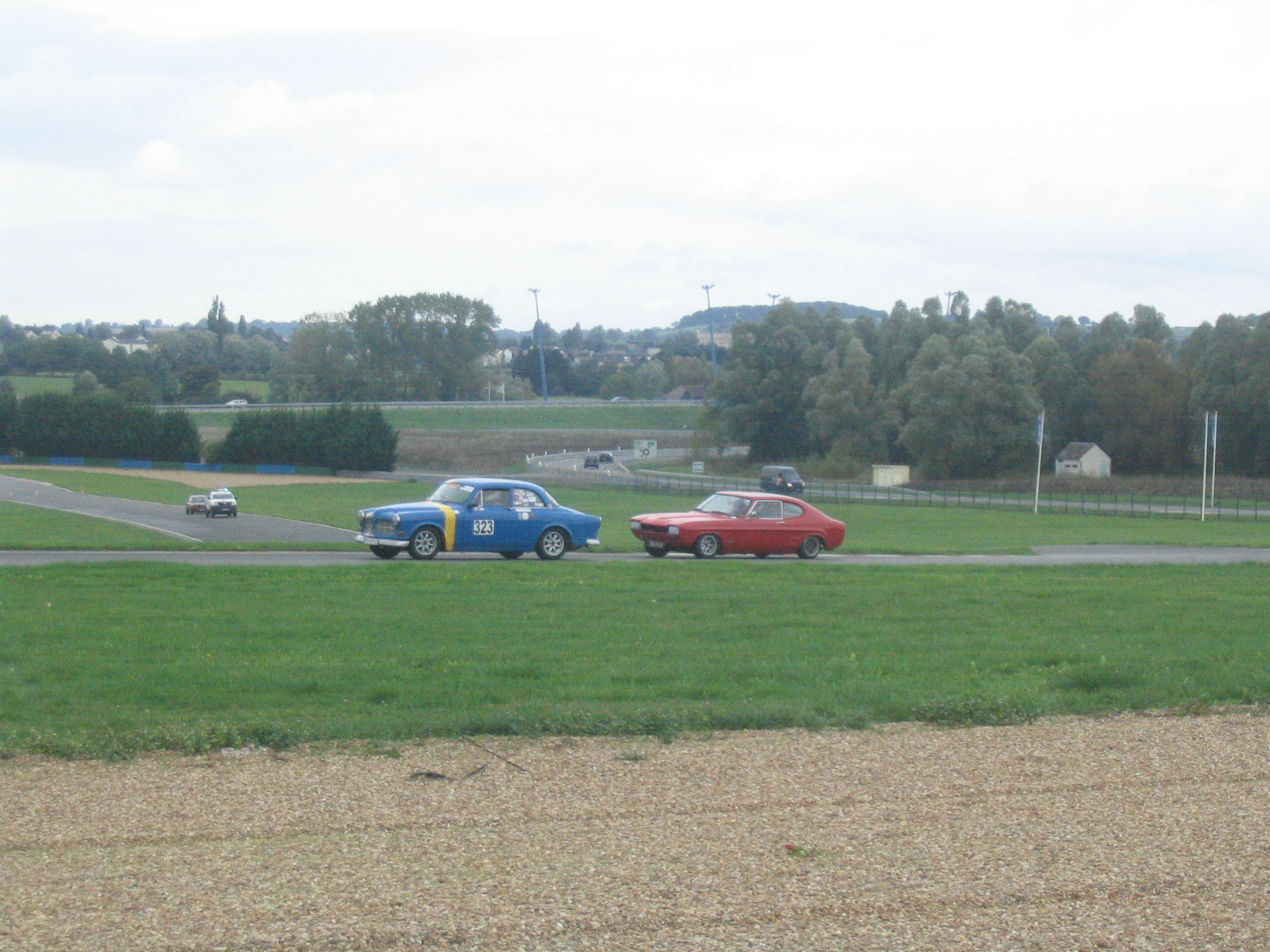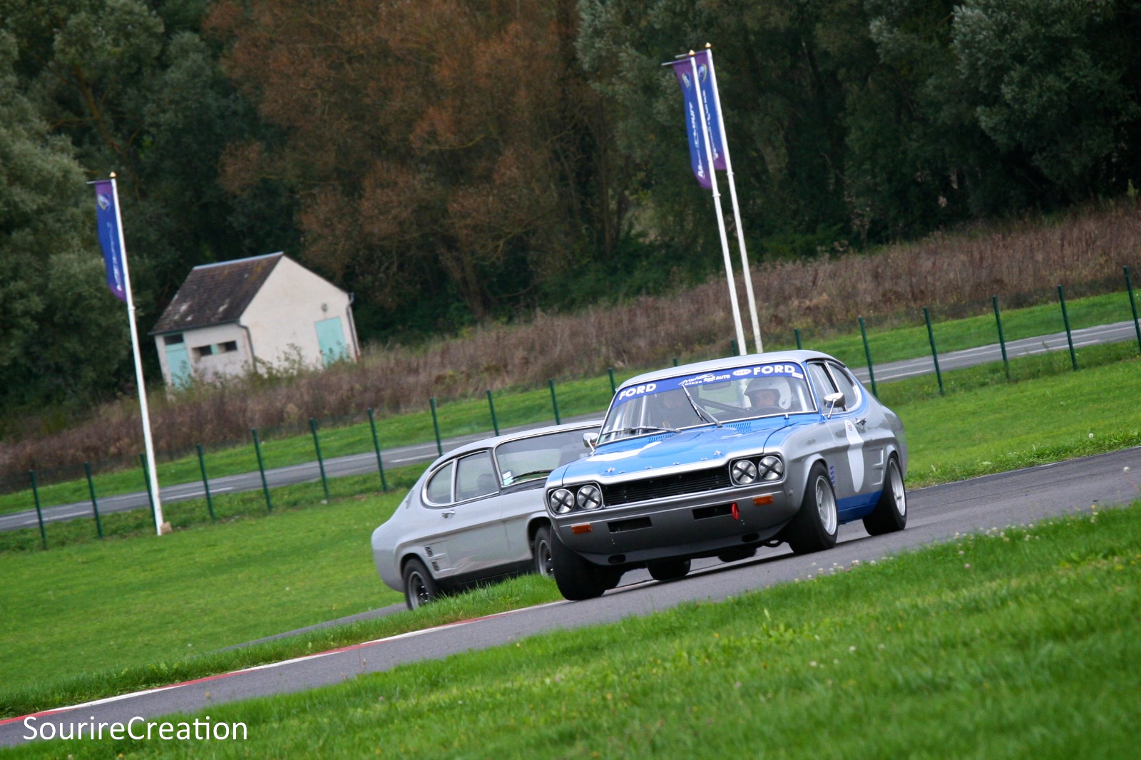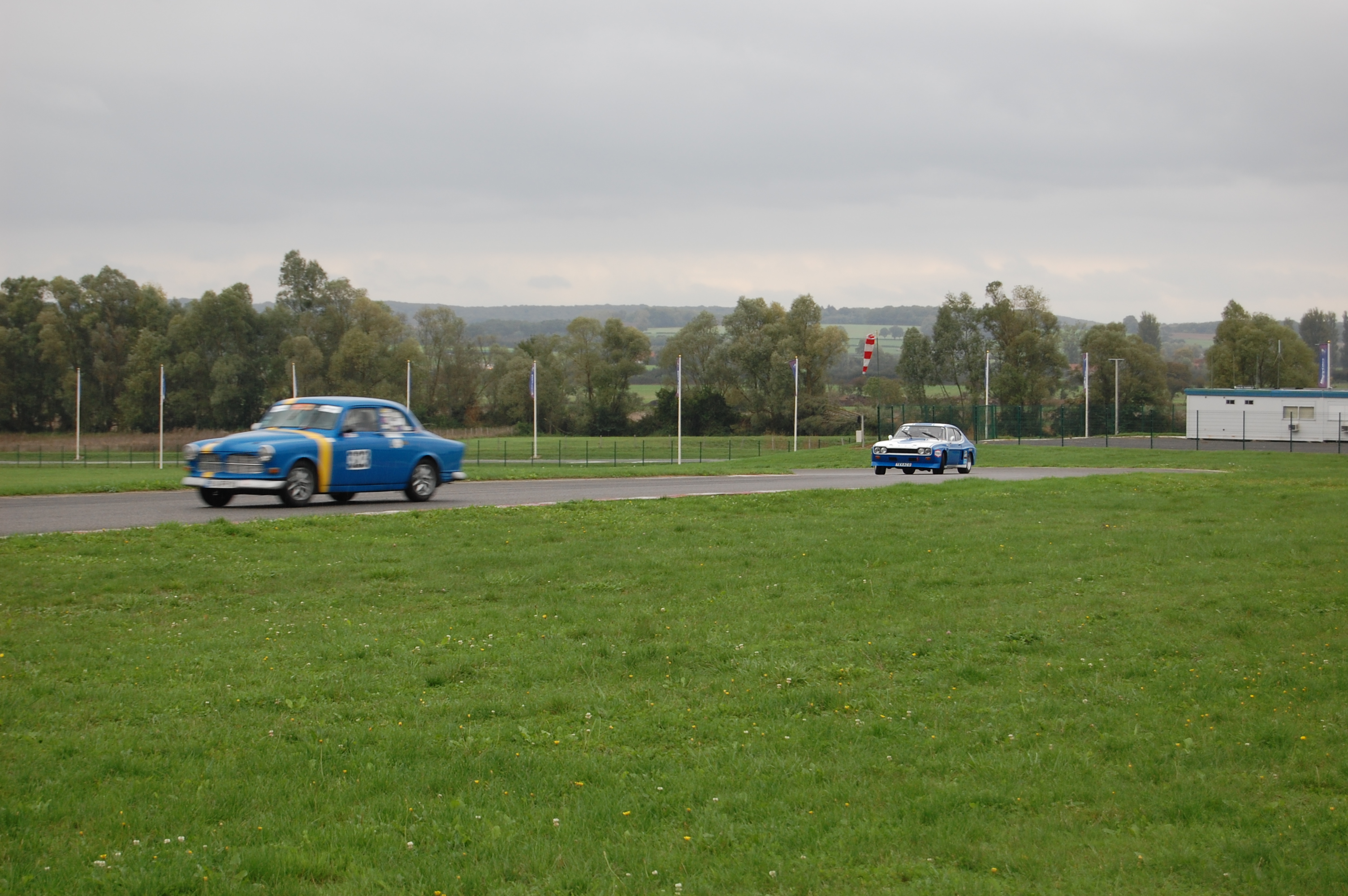 Les américaines faisaient d’ailleurs leur show avec entre autre la très belle Shelby GT350R de Daniel qui donnait la réplique à la non moins puissante Cheetah de Xavier. Il y avait aussi la première de certains qui, ayant vécu l’édition 2012 en «sac de sable», avaient remué ciel et terre pour être au volant en 2013. C’est le cas de Jean-Louis qui se joignait à nous avec sa Capri 2600GT ayant justement bien connue la terre, car c’est sur cette surface qu’ils avaient couru ensemble dans les années 80. Gardant les stigmates de cette vie trépidante, l’inusable Capri fit l’aller retour par la route et ne se ménageait pas en piste, malgré ses plus de 200 000km au compteur. Preuve que les autos que l’on aime sont «éternelles» !